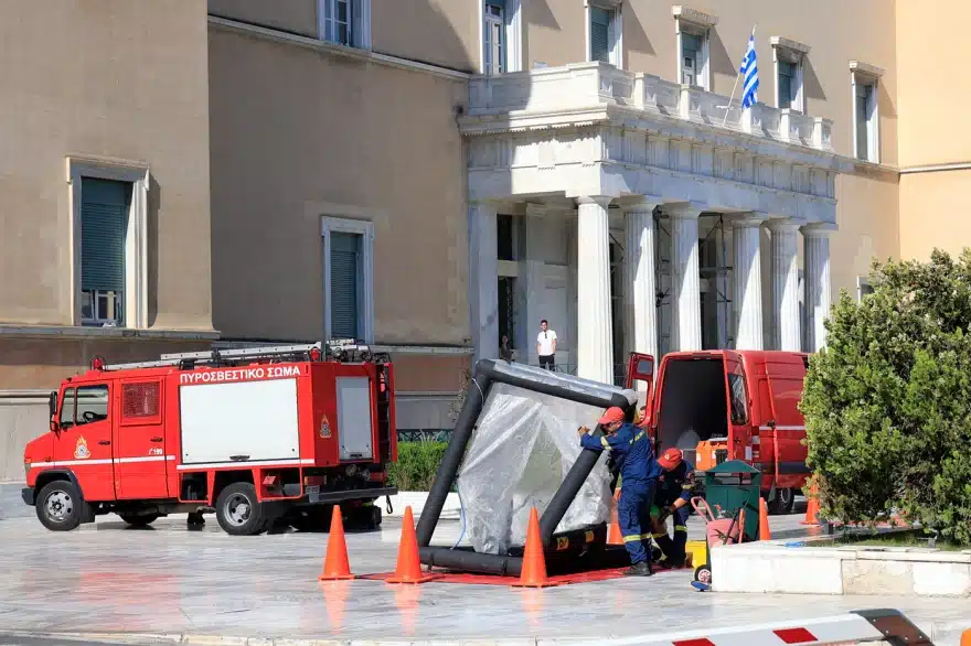 «Σε εξέλιξη επιχείρηση περισυλλογής ύποπτου φακέλου από εξωτερικό χώρο του Ελληνικού Κοινοβουλίου στην Αθήνα. Επιχειρούν 12 πυροσβέστες με την ειδική ομάδα της 1ης ΕΜΑΚ και 4 οχήματα».