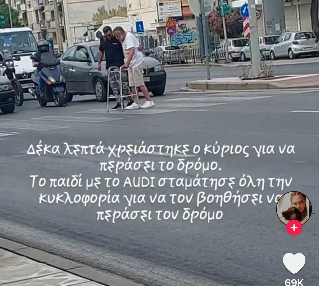 Παρατηρώντας νέους ανθρώπους σε τέτοιες πράξεις αλληλεγγύης και εν συναίσθησης μας δίνει ελπίδες για μια καλύτερη κοινωνία. Αυτό ακριβώς συνέβη και στη πόλη της Θεσσαλονίκης όπου ένας νεαρός οδηγός, σταμάτησε την κίνηση, προκειμένου να βοηθήσει άντρα με κινητικά προβλήματα να διασχίσει το δρόμο.