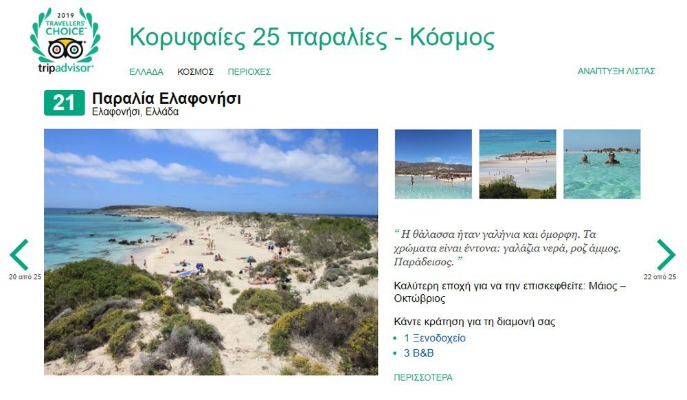 Την τιμητική τους είχαν η λιμνοθάλασσα του Μπάλου η οποία κατέλαβε την 15 θέση. Ενώ στη λίστα συμπεριλαμβάνεται και το Ελαφονήσι το οποίο βρίσκεται στην 21η θέση!