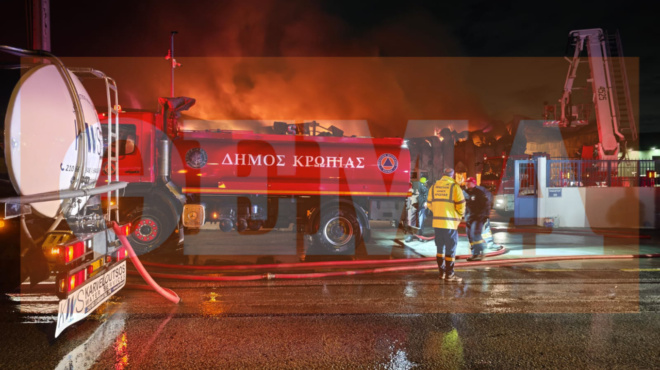 Μεγάλη φωτιά εκδηλώθηκε το απόγευμα της Τρίτης 14/1 στο εργοστάσιο της Καραμολέγκος στο Κορωπί.