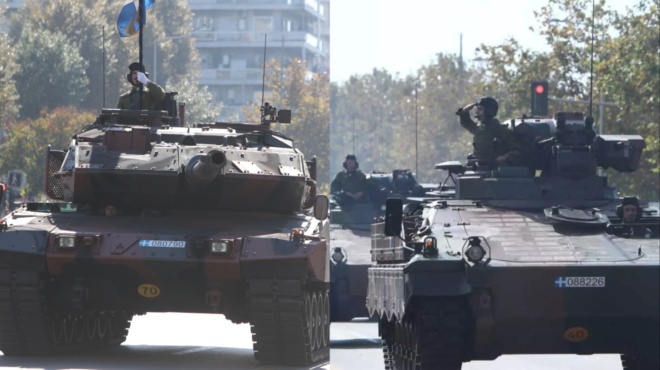 Η διέλευση των σύγχρονων τεθωρακισμένων, τύπου Leopard 1 και 2, καθήλωσε το κοινό. Τα άρματα αυτά, γνωστά για την ταχύτητα, την ευελιξία και τη μεγάλη ισχύ πυρός τους, αποτελούν δύναμη ψυχολογικής πίεσης απέναντι σε κάθε πιθανό αντίπαλο.