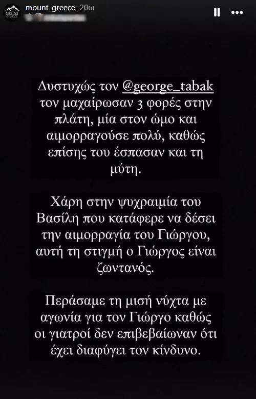 Έναν από τους εθελοντές, τον μαχαίρωσαν 3 φορές στην πλάτη και μια ακόμα στον ώμο, ενώ από τα χτυπήματα, του έσπασαν και τη μύτη. Όπως περιέγραψε ο ένας εθελοντής, πέρασαν τη μισή νύχτα με αγωνία για την τύχη του φίλου τους με τις πολλαπλές μαχαιριές, αλλά διέφυγε τον κίνδυνο για τη ζωή του.