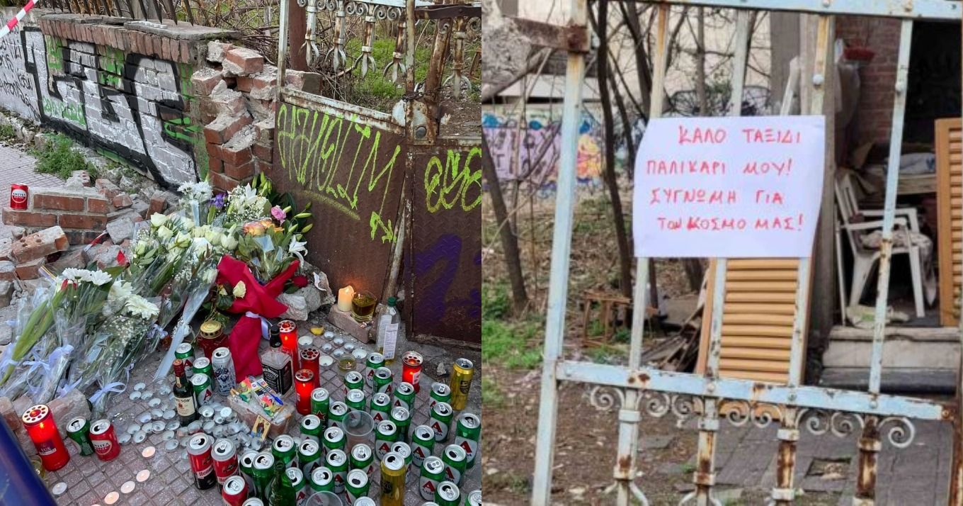 Δίπλα στα λιγοστά τούβλα – θλιβερά απομεινάρια της τραγωδίας- έχουν συγκεντρωθεί λουλούδια, κεριά μα και άδεια ή μισογεμάτα μπουκάλια με αλκοόλ.