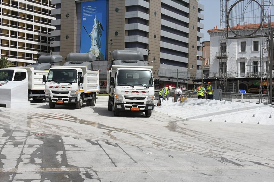 Ήδη από τις πρωινές ώρες, τα προστατευτικά έχουν απομακρυνθεί από το μεγαλύτερο μέρος της πλατείας. Από εκεί και πέρα, συνεργεία από το δήμο προβαίνουν στον καθαρισμό της πλατείας. Το βράδυ, σύμφωνα με πληροφορίες, θα λειτουργήσει και μάλιστα, φωταγωγημένο και το συντριβάνι από την πλατεία.