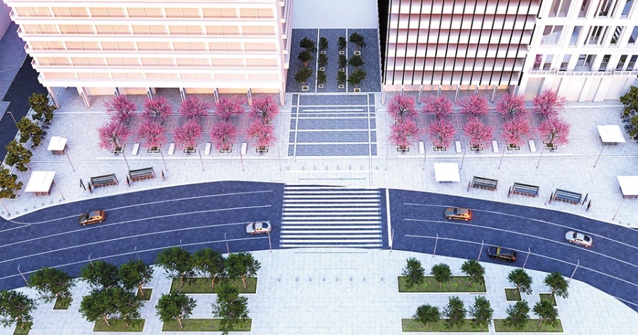 Επίσης, θα δημιουργηθεί μια σύγχρονη διάβαση προς την «κεντρική» πλατεία Συντάγματος, περισσότερο φιλική που θα δημιουργεί συνθήκες πρόσθετης οδικής ασφάλειας και θα διασυνδέει λειτουργικά τις ροές πεζών. Φωτιστικά στο δάπεδο της ασφάλτου, συγχρονισμένα με τους σηματοδότες, θα δημιουργούν αίσθηση πρόσθετης ασφαλείας, κυρίως τις βραδινές ώρες.