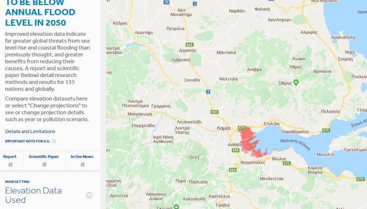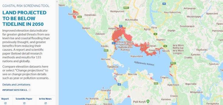 Περιοχές της Ελλάδας κάτω από το νερό: Η κλιματική αλλαγή φέρνει μία μακρινή συνθήκη. Τα προβλήματα αποτυπώνονται σε μελέτες, που καταρρίπτουν στοιχεία, που ήταν δυσοίωνα. Η Climate Central δημοσίευσε την έρευνά της στο περιοδικό Nature και αποκαλύπτει ποιες περιοχές του πλανήτη υπάρχει σοβαρό ενδεχόμενο να βρεθούν κάτω από την στάθμη της θάλασσας. Αυτό αναμένεται να συμβεί μέχρι το 2050, ενώ οι προβολές φτάνουν μέχρι το 2100.