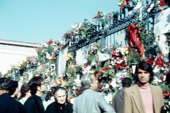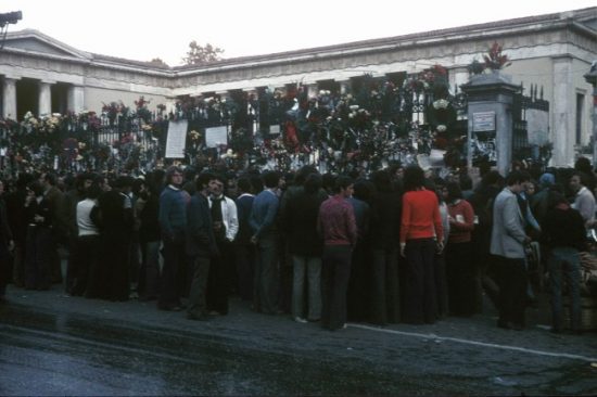 Στις 3 Νοεμβρίου είχε προβληθεί σε πρώτη μετάδοση από την κρατική τηλεόραση το ολλανδικό φιλμ, με την εισβολή του τανκ στο Πολυτεχνείο. Έως τότε είχαν δημοσιευτεί μόνο κάποιες σχετικές φωτογραφίες στον Τύπο, όπως αυτή στο εξώφυλλο του περιοδικού «Επίκαιρα» στις 8 Αυγούστου του ‘74. Κατά το τριήμερο του επίσημου εορτασμού (22-24/11) κορυφώθηκε η καθημερινή προσέλευση χιλιάδων πολιτών στο εμβληματικό κτίριο της Πατησίων για την απότιση φόρου τιμής, με την κατάθεση λουλουδιών και μικρών σημειωμάτων στα κάγκελα.