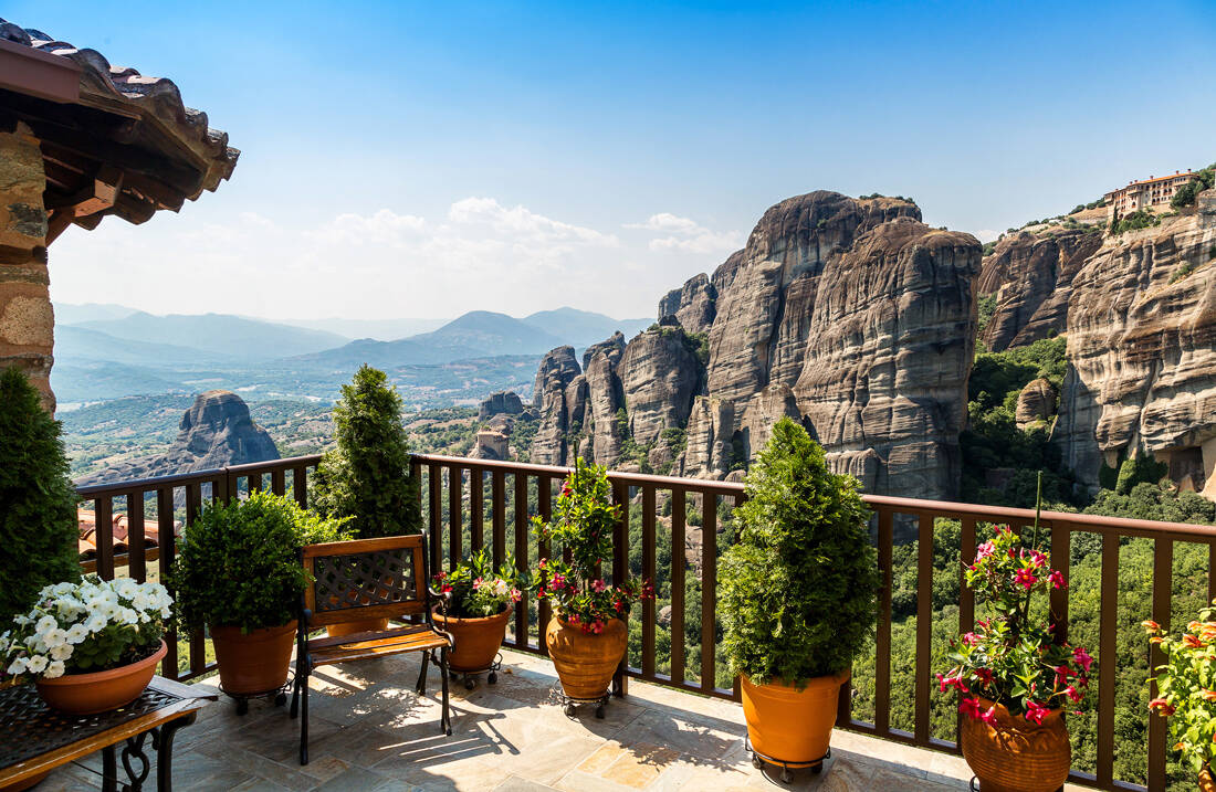 Το επιβλητικό τοπίο με το μοναδικό σε ομορφιά γεωλογικό φαινόμενο, προκαλεί ρίγη και δέος στη θέασή του. Τα βυζαντινά μοναστήρια είναι σκαρφαλωμένα πάνω στους απότομους βράχους. Σήμερα μόνο έξι μοναστήρια λειτουργούν, από τα συνολικά 24 που είχαν δημιουργηθεί πριν από εκατοντάδες χρόνια. Συνεχίζουν χωρίς διακοπή την παράδοση της ορθοδοξίας για περισσότερα από 600 χρόνια. Εκεί, φιλοξενούνται αντικείμενα και κειμήλια ανεκτίμητης αξίας, καθώς και τοιχογραφίες πραγματικούς θησαυρούς.