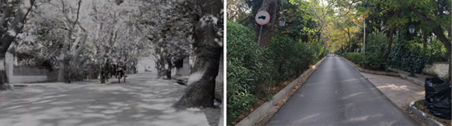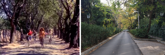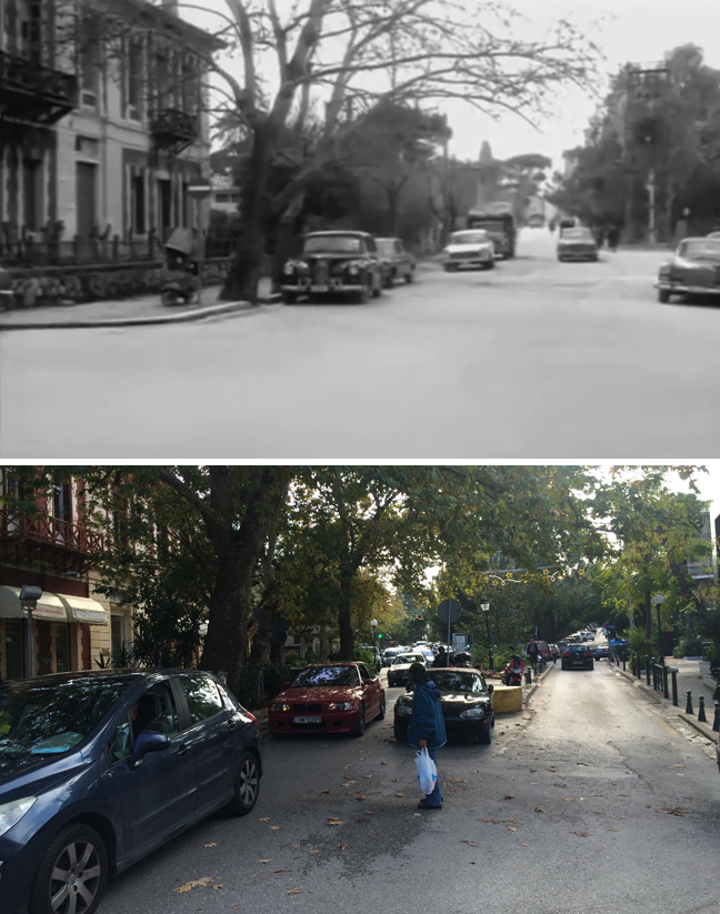 Πριν καταταγεί στο Ναυτικό η Αλίκη Βουγιουκλάκη στην ποδηλατάδα της με τις φίλες της περνά από την ειδυλιακή οδό Όθωνος. Ο τότε κατάφυτος χωματόδρος αν και ασφαλτοστρωμένος σήμερα έχει την παραμυθένια εικόνα του χθες.