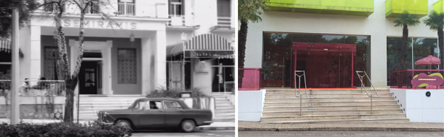 Στο Hotel Dimitrakopoulos, ήταν που ο Κώστας Βουτσάς έβγαινε στο μπαλκόνι και κορόιδευε τους τρεις κυρίους που τον κυνηγούσαν. Εκτός από το «Το πρόσωπο της ημέρας» του 1970, με τον Κώστα Βουτσά και τον Γιάννη Γκιωνάκη, είχε φιλοξενήσει στα δωμάτια του και σκηνές από άλλες ταινίες της εποχής. Σήμερα παραμένει ίδιο αλλά ερημωμένο…