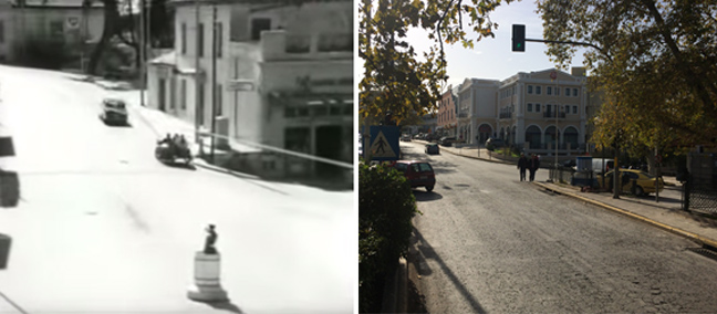 Αν και τα αυτοκίνητα σε σχέση με τότε σήμερα είναι πολύ περισσότερα, καθώς και τα μαγαζιά πέριξ της πλατείας και κατά μήκος του δρόμου που οδηγεί στην Εθνική με κατεύθυνση το κέντρο η εικόνα της πλατείας με το κλειστό συντριβάνι, δεν είναι πολύ διαφορετική από τότε.