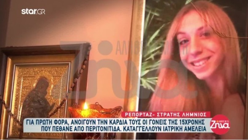 Συντετριμμένοι είναι οι γονείς από την απώλεια της 15χρονης κόρης τους, Χριστίνας που έφυγε από τη ζωή τον περασμένο Νοέμβριο από οξεία περιτονίτιδα.