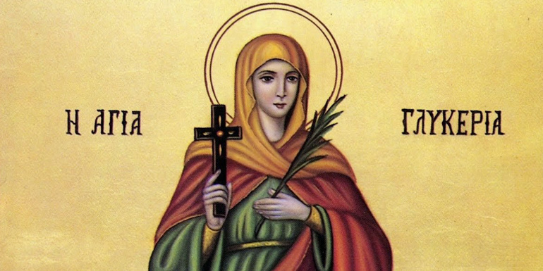 Τὴν καλλιπάρθενον, Χριστοῦ τιμήσωμεν, τὴν ἀριστεύσασαν πόνοις ἀθλήσεως, καὶ ἀσθένεια τῆς σαρκός, τὸν ὄφιν καταβαλοῦσαν πόθω γὰρ τοῦ Κτίσαντος, τῶν βασάνων τὴν ἕφοδον, παρ’ οὐδὲν ἠγήσατο, καὶ θεόθεν δεδόξασται πρὸς ἣν ἀναβοήσωμεν πάντες, χαίροις θεόφρον Γλυκερία.