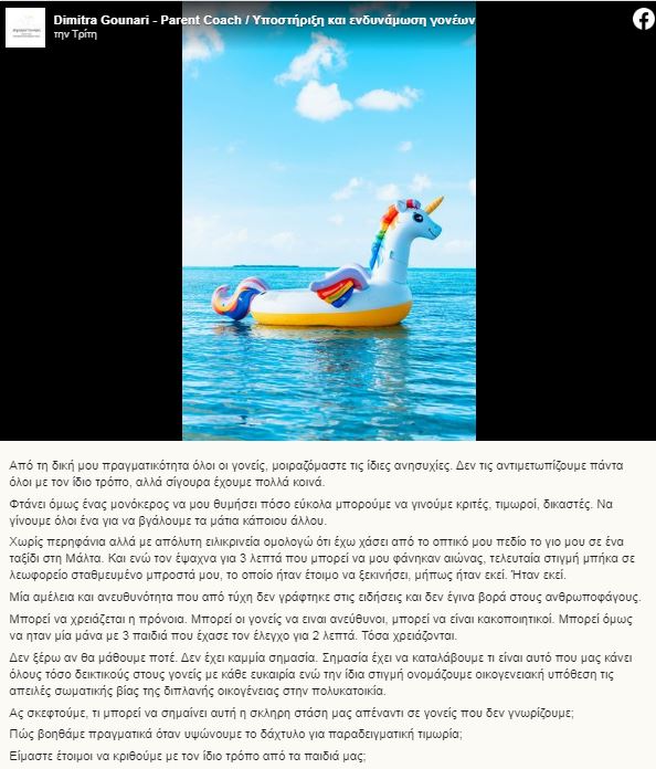 Οικογενειακή σύμβουλος: Όσα έγραψε στη συνέχεια της ανάρτησής της στο Facebook
