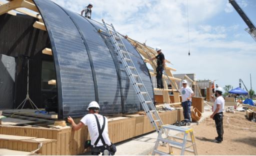 – Τα φωτοβολταϊκά πάνελ διπλασιάζονται καθώς το υλικό της οροφής, τροφοδοτεί το σπίτι με ηλιακή ενέργεια.