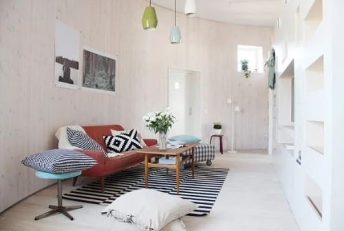 – Στο εσωτερικό του χρησιμοποιήθηκε παραδοσιακό Σκανδιναβικό design με στοιχεία μινιμαλισμού, ξύλα σε φωτεινές αποχρώσεις και έντονος φωτισμός.