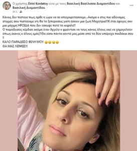 Έφυγε από τη ζωή η Βασιλική Διαμαντίδου στα 48 της χρόνια έχοντας δώσει γενναία μάχη απέναντι στον καρκίνο.