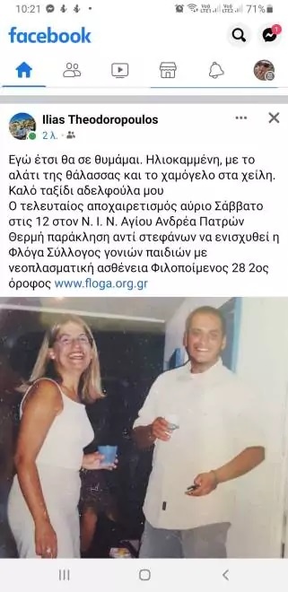 Θρηνεί ο Διοικητής του Γενικού Κρατικού Νοσοκομείου Πατρών «Ο Άγιος Ανδρέας» , Ηλίας Θεοδωρόπουλος, έχασε την 52χρονη αδελφή του, Ευγενία.