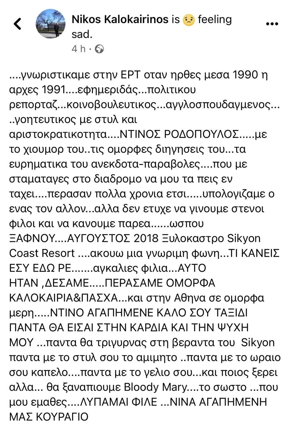 Δείτε την ανάρτηση του για τον Ντίνο Ροδόπουλο