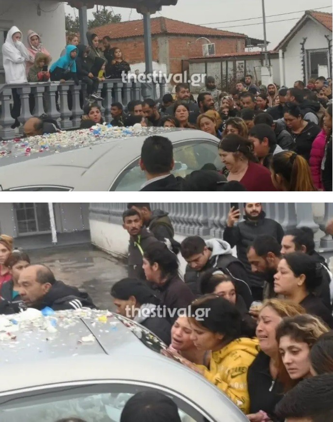 Ξεσπούσαν συνέχεια σε κλάματα, ενώ λίγο πριν την εξόδιο ακολουθία, ένας νεαρός χόρεψε ένα από τα αγαπημένα τραγούδια του άτυχου Ρομά κι ο κόσμος τον χειροκροτούσε. Πριν από λίγο ξεκίνησε η πομπή για την κηδεία από το σπίτι του 16χρονου, με τη γυναίκα του να ραγίζει καρδίες με την κραυγή της. Κατά τη διάρκεια της πομπής, έραναν τη νεκροφόρα με λουλούδια.