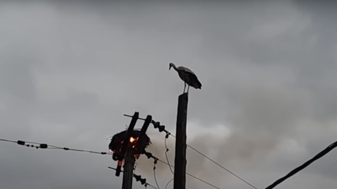 Συγκλονιστικό βίντεο δείχνει τη στιγμή που μαμά-πελαργός παρακολουθεί ανήμπορη τα μικρά της να φλέγονται μέσα στην φωλιά τους.