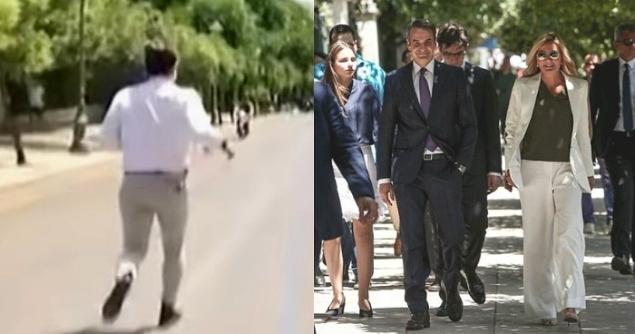 Ρεπόρτερ κάνει σπριντ για να προλάβει τον Κυριάκο Μητσοτάκη. Τις αντοχές του μας έδειξε σήμερα ο δημοσιογράφος του ΣΚΑΪ Νίκος Υποφάντης ο οποίος πήρε στο κατόπι την οικογένεια Μητσοτάκη.