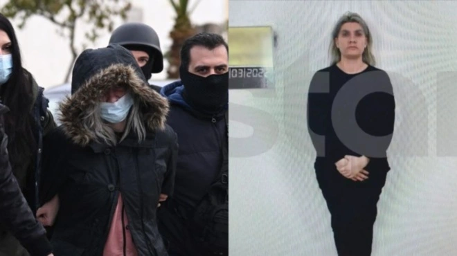 Η κατηγορούμενη φοράει ένα μαύρο μακρυμάνικο μπλουζάκι, ένα μαύρο παντελόνι, έχει βαμμένα μαύρα και τα νύχια της, ενώ τα χέρια της τα έχει σταυρωμένα μπροστά της.