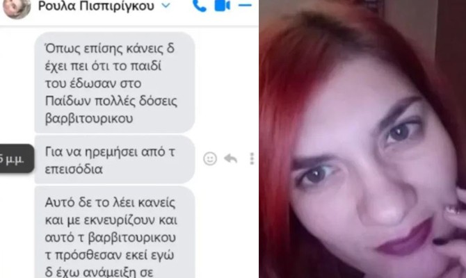 «Επιμένουν ότι το παιδί έπαιρνε μόνο χαλαρωτικά και αντιεπιληπτικά ενώ έπαιρνε και ηρεμιστικά η Τζωρτζίνα. Κανείς δεν έχει πει ότι του παιδιού του έδωσα στο Παίδων πολλές δόσεις βαρβιτουρικού για να ηρεμήσει από τα επεισόδια. Αυτό δεν το λέει κανείς. Κι το βαρβιτουρικό το πρόσθεσαν εκεί, εγώ δεν έχω ανάμειξη σε αυτό», έγραψε η Ρούλα Πισπιρίγκου στη δημοσιογράφο.