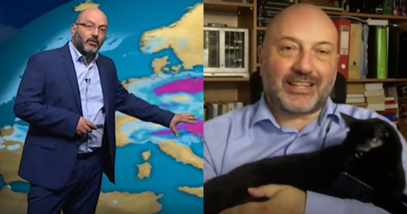 Ο μετεωρολόγος Σάκης Αρναούτογλου ετοιμαζόταν να αναφερθεί στις επερχόμενες καιρικές συνθήκες, όταν «εισέβαλε» στο πλάνο η γάτα του, η οποία και έμεινε στην αγκαλιά του.