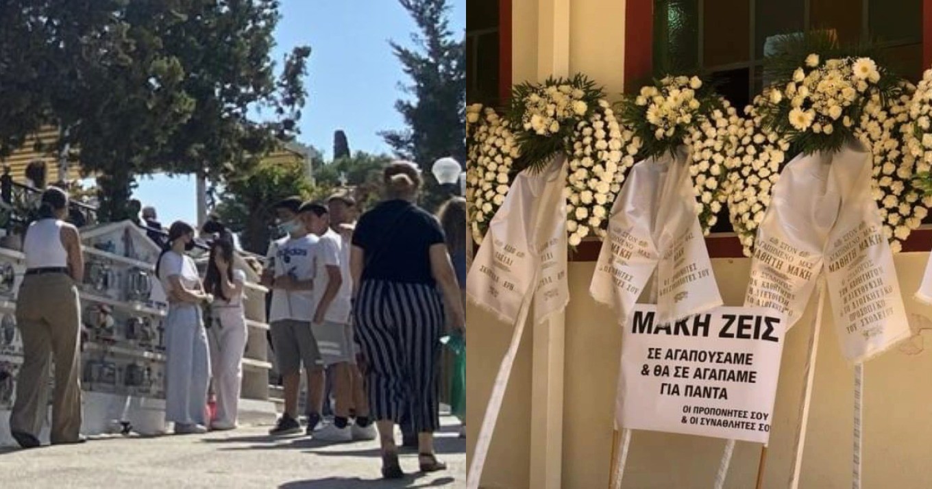 Οι συμμαθητές του επέλεξαν να τον αποχαιρετήσουν ντυμένοι όλοι στα λευκά κρατώντας ένα λευκό τριαντάφυλλο, ενώ υπήρχε ένα συγκινητικό μήνυμα στα στεφάνια «Μάκη ζεις, σ’ αγαπούσαμε και θα σ’ αγαπάμε για πάντα».