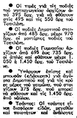 Στο ρεπορτάζ της εφημερίδας «Τα Νέα» διαβάζουμε τις τιμές για τις ποδιές, από το νηπιαγωγείο μέχρι το γυμνάσιο.