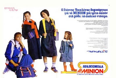 Κάθε χρόνο λίγο πριν την έναρξη της σχολικής χρονιάς γονείς και μαθητές έσπευδαν στα πολυκαταστήματα του κέντρου της Αθήνας, Μινιόν, Αφοί Λαμπρόπουλοι, Δραγώνας, για να αγοράσουν καινούριες σχολικές ενδυμασίες.