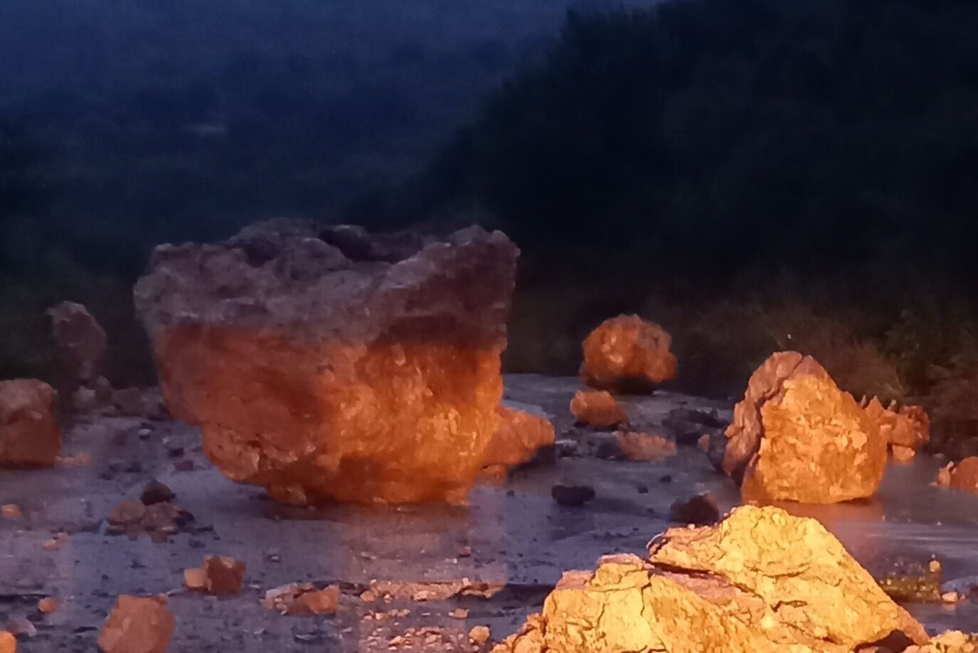 Ιδιαίτερα κρίσιμη ήταν η κατάσταση στην περιοχή Καρούζα, όπου έγιναν ξανά κατολισθήσεις, αυτή τη φορά με ιδιαίτερα επικίνδυνο τρόπο. Συνεργεία της Περιφέρειας επιχείρησαν στην περιοχή, προσπαθώντας να ανοίξουν τον δρόμο.
