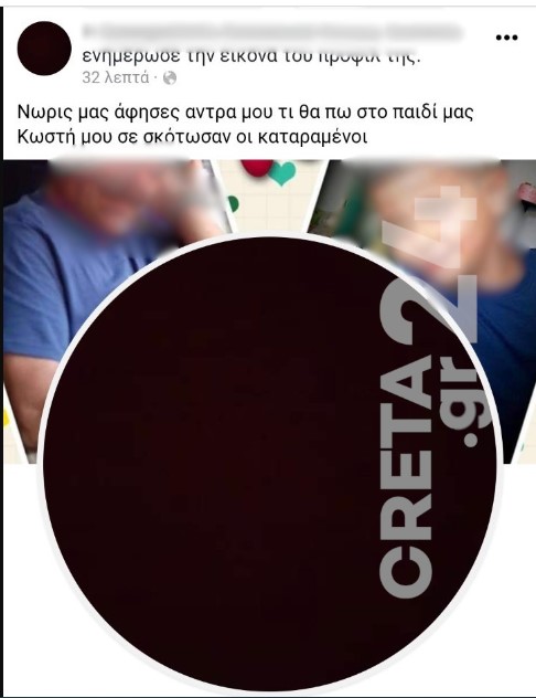 Λίγη ώρα μετά τη δολοφονία του 22χρονου στο Αργουλιό Μυλοποτάμου στην Κρήτη, η χήρα του με ένα σπαρακτικό μήνυμα στα μέσα κοινωνικής δικτύωσης που ξεχειλίζει οργή αποχαιρέτησε τον σύζυγό της.