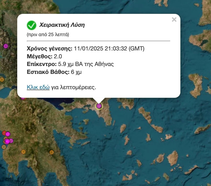 Σεισμός σημειώθηκε στην Αττική το βράδυ του Σαββάτου 11 Ιανουαρίου, ο οποίος ήταν 2,0 ρίχτερ χωρίς ωστόσο να προκαλέσει ιδιαίτερα προβλήματα.