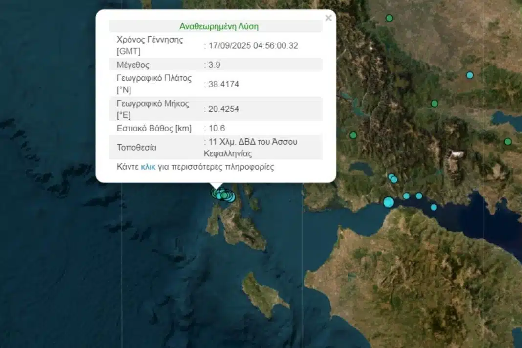 Σεισμός τώρα 3,9 Ρίχτερ σημειώθηκε στην Κεφαλονιά.