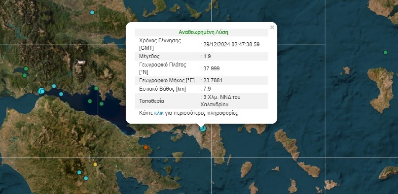 Πιο αναλυτικά νέος σεισμός σημειώθηκε πριν λίγο μαζί με άλλες δύο δονήσεις στο Χαλάνδρι χωρίς να προκαλέσουν κάποια ζημιά αλλά δεδομένα αναστάτωσαν τους κατοίκους.
