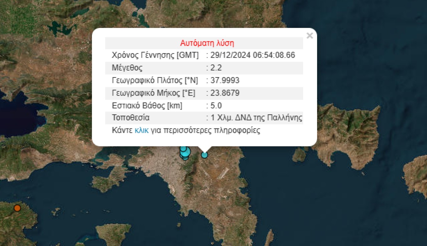 Ο «χορός» των Ρίχτερ μάλιστα συνεχίζεται και νωρίς το πρωί, καθώς στις 08:54 σημειώθηκαν, σχεδόν ταυτόχρονα, δύο νέες δονήσεις: 2,2 Ρίχτερ, ένα χιλιόμετρο δυτικά-νοτιοδυτικά της Παλλήνης, με εστιακό βάθος πέντε χιλιομέτρων και 2 Ρίχτερ, τέσσερα χιλιόμετρα δυτικά-νοτιοδυτικά της Αγίας Παρασκευής, με εστιακό βάθος 8,3 χιλιομέτρων.