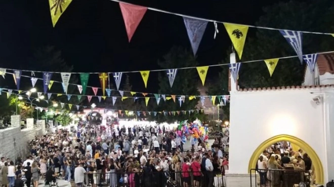Προσκυνητές στέκονται υπομονετικά στη σειρά για να ανάψουν ένα κερί, ενώ εκατοντάδες είναι κι εκείνοι που ανέβηκαν στο Μοναστήρι της Παναγιάς Τσαμπίκας της ψηλής για να προσευχηθούν στη θαυματουργή εικόνα.