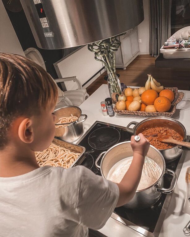 Στη φωτογραφία ο γιος της ο Mike είναι στην κουζίνα και τη βοηθάει την μητέρα του να φτιάξει παστίτσιο!