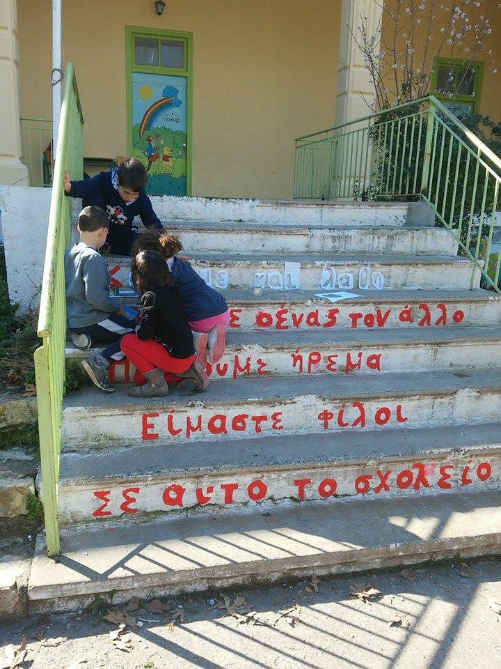 Τα παιδιά στο Δημοτικό Σχολείο στο Εμπρόσνερο Αποκορώνου στα Χανιά, αποφάσισαν να διακοσμήσουν την εξωτερική σκάλα του κτιρίου τους, αλλά όχι για αισθητικούς λόγους. Θέλησαν να γράψουν τα σημαντικότερα μηνύματα της ζωής σύμφωνα με αυτά. Σε κάθε σκαλί βρίσκεται γραμμένη μια πολύτιμη φράση.