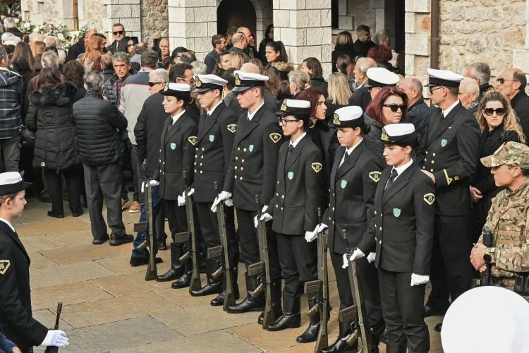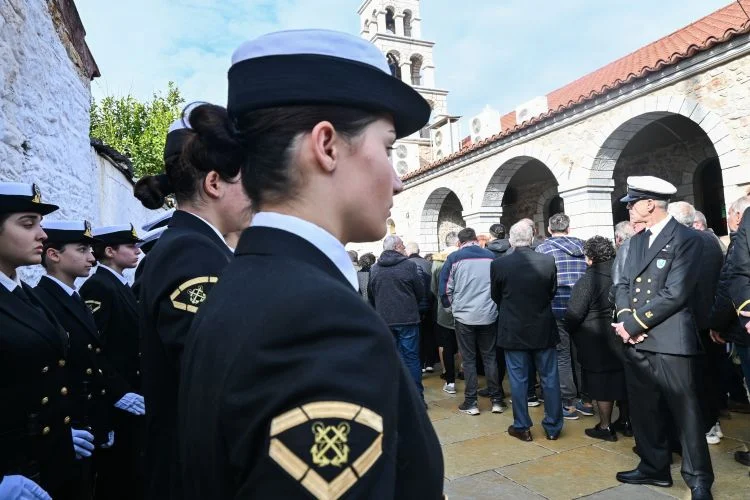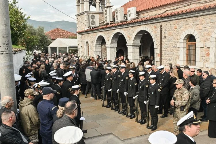 Φίλοι, συγγενείς και συνάδελφοι παρέστησαν στην κηδεία στον Ιερό Ναό Υπαπαντής Πραστού Αγίου Ανδρέα, για να αποχαιρετήσουν τον λιμενικό, που η απώλειά του βύθισε στο πένθος την τοπική κοινωνία και το Λιμενικό Σώμα.