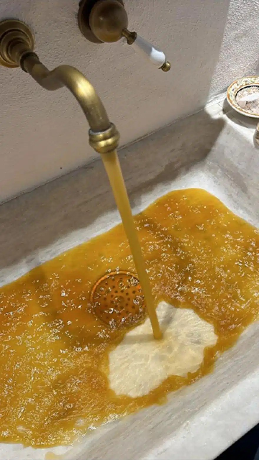 Ακόμα χειρότερα, με βάση οπτικό υλικό που παρουσιάζει το protothema.gr, τα λύματα καταλήγουν ακόμα και στις βρύσες σπιτιών και αυλών, με αποτέλεσμα το νερό που αναβλύζει και φτάνει στους νεροχύτες ή ακόμα και στα φίλτρα νερού των νοικοκυριών, να είναι… καφέ -και, φυσικά, ακατάλληλο για κατανάλωση.
