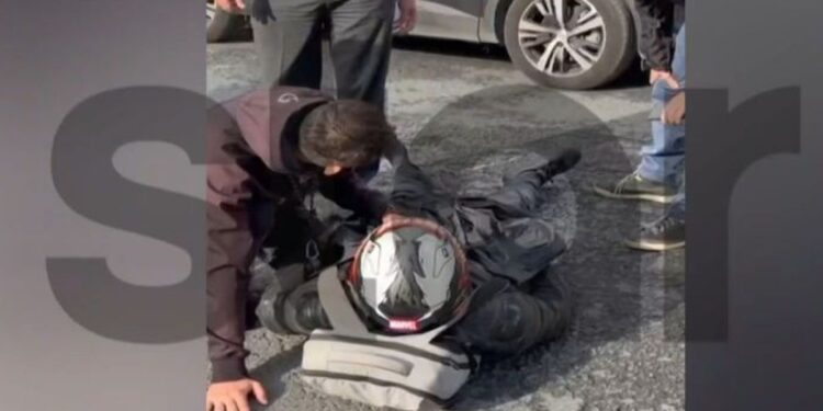 Ο μοτοσικλετιστής εκτοξεύθηκε αρκετά μέτρα μακριά, προσγειώθηκε στην άσφαλτο και τραυματίστηκε. Ευτυχώς, φορούσε κράνος, το οποίο πιθανότατα περιόρισε τη σοβαρότητα των τραυμάτων του. Περαστικοί που είδαν τη σκηνή έσπευσαν να του προσφέρουν τις πρώτες βοήθειες, μέχρι να καταφθάσει ασθενοφόρο του ΕΚΑΒ.
