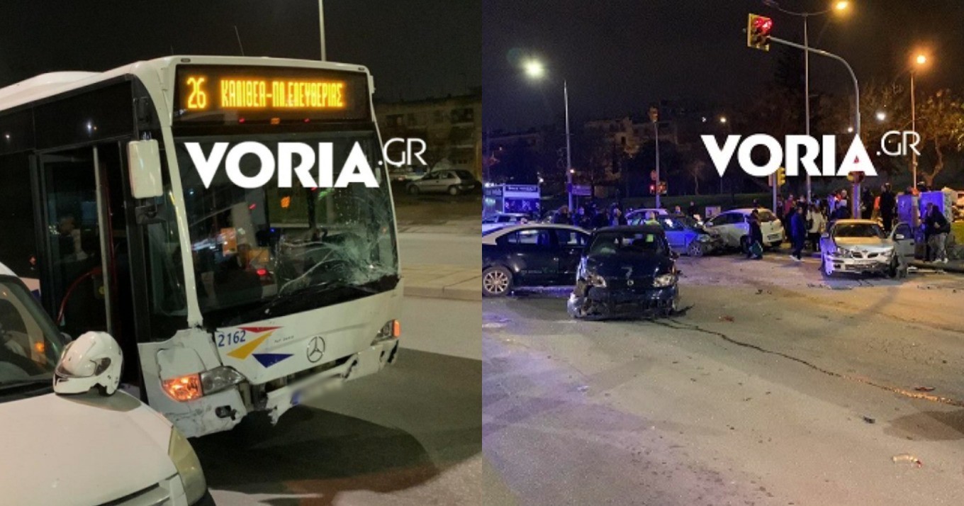 Σοβαρό τροχαίο σημειώθηκε απόψε στη Θεσσαλονίκη με αστικό λεωφορείο που βγήκε εκτός ελέγχου με συνέπεια να παρασύρει αρκετά οχήματα.