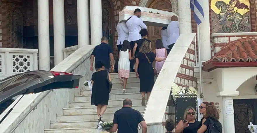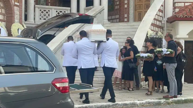 Η εξόδιος ακολουθία τελείται στον Ιερό Ναό του Αγίου Γεωργίου στα Νέα Μουδανιά Χαλκιδικής, ενώ η σορός της έφτασε στην εκκλησία, λίγο μετά τις 10 το πρωί, σε λευκό φέρετρο.