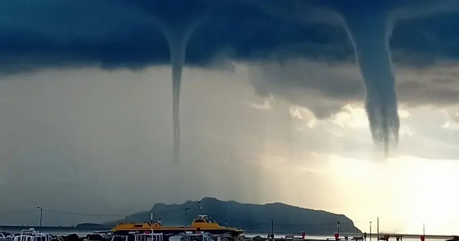 Στη θάλασσα εμφανίστηκε όχι ένας αλλά δύο υδροστρόβιλοι, σχηματίζοντας ένα εντυπωσιακό σκηνικό που γρήγορα έγινε θέμα συζήτησης και κυκλοφόρησε στα κοινωνικά δίκτυα.