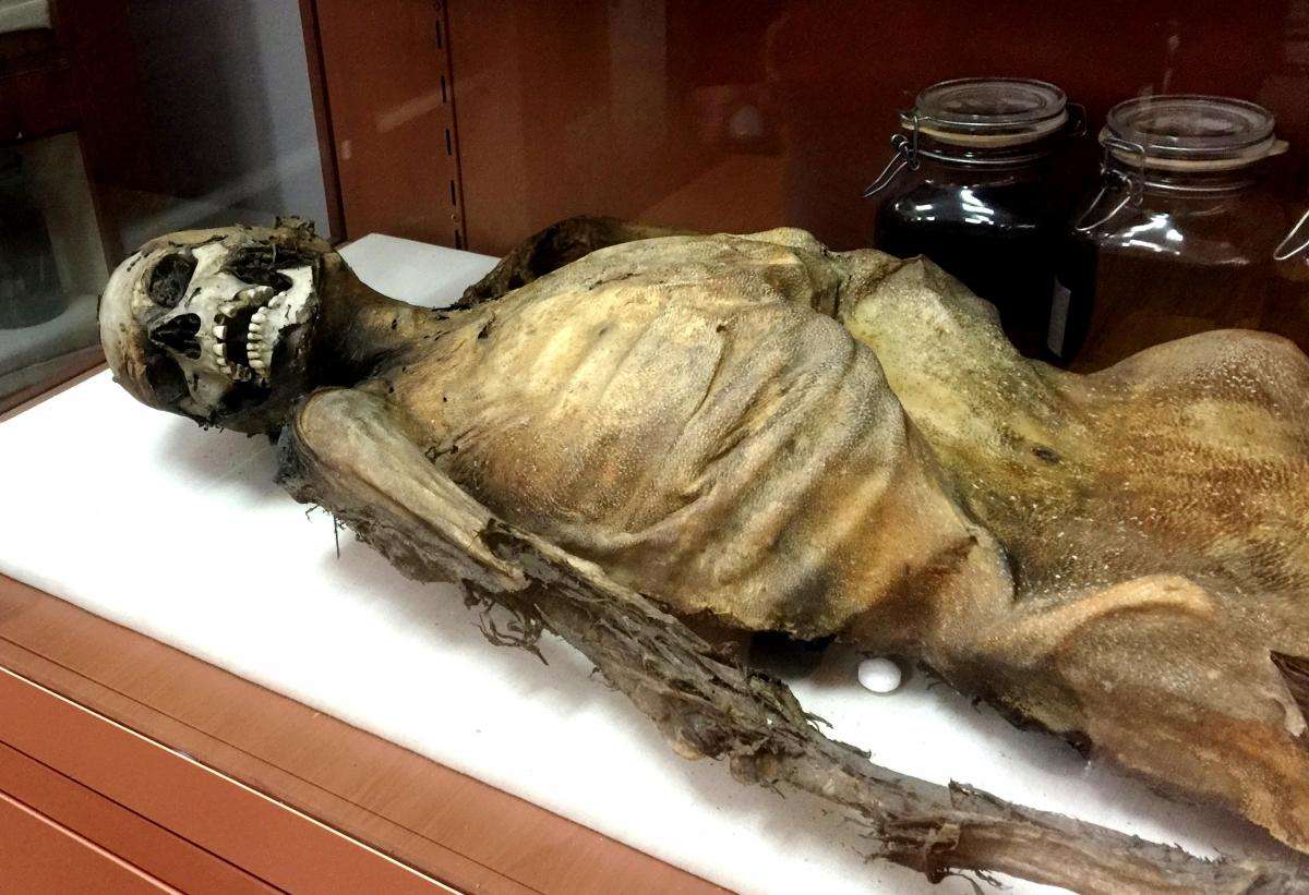Έχουμε αφυδάτωση των μαλακών ιστών, η οποία λαμβάνει χώρα υπό συγκεκριμένες περιβαλλοντολογικές συνθήκες. Απαιτούνται υψηλή θερμοκρασία και χαμηλά ποσοστά υγρασίας. Το δέρμα αποκτά αυτή την ξυλώδη μορφή, γίνεται πολύ σκληρό. Θεωρητικά, μπορεί να μείνει για πάντα έτσι αν δεν προσβληθεί από έντομα που τρέφονται με ιστούς. Οι ιδανικές και σταθερές συνθήκες διατήρησης μιας μούμιας, όμως, απαιτούν έναν ειδικά διαμορφωμένο ψυχόμενο θάλαμο. Γι’ αυτό και μπαίνοντας κανείς στο μουσείο καλείται να αντιμετωπίσει… έντονο ψύχος».