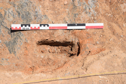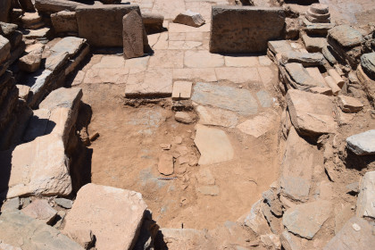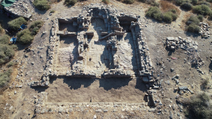 «Σε ψηλότερο άνδηρο, αλλά αξονικά με την είσοδο της πρωτοβυζαντινής οχύρωσης, ολοκληρώθηκε φέτος η ανασκαφή του εσωτερικού της τρίκλιτης παλαιοχριστιανικής βασιλικής. Από την σχεδόν τετράγωνη κάτοψη εξέχει ανατολικά η αψίδα του ιερού.