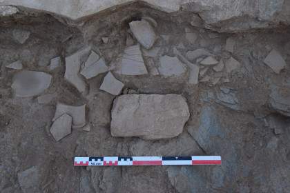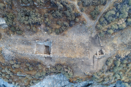 Η οχύρωση της ύστερης αρχαιότητας εδράζεται πάνω σε παλαιότερη, πιθανώς των αρχαϊκών χρόνων, φάση με την οποία φαίνεται να συνδέονται χώροι εν μέρει λαξευμένοι στο φυσικό βράχο. Από τις αναμοχλευμένες επιχώσεις των πρωτοβυζαντινών χρόνων προέρχονται και λίγα ευρήματα (κεραμεική και εργαλεία από οψιανό) της Πρωτοκυκλαδικής περιόδου, καθώς και σημαντικές ποσότητες κεραμεικής των Γεωμετρικών έως ρωμαϊκών χρόνων».